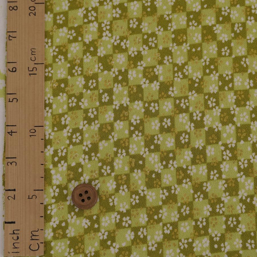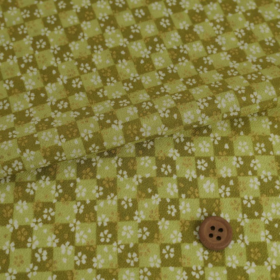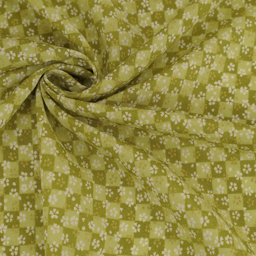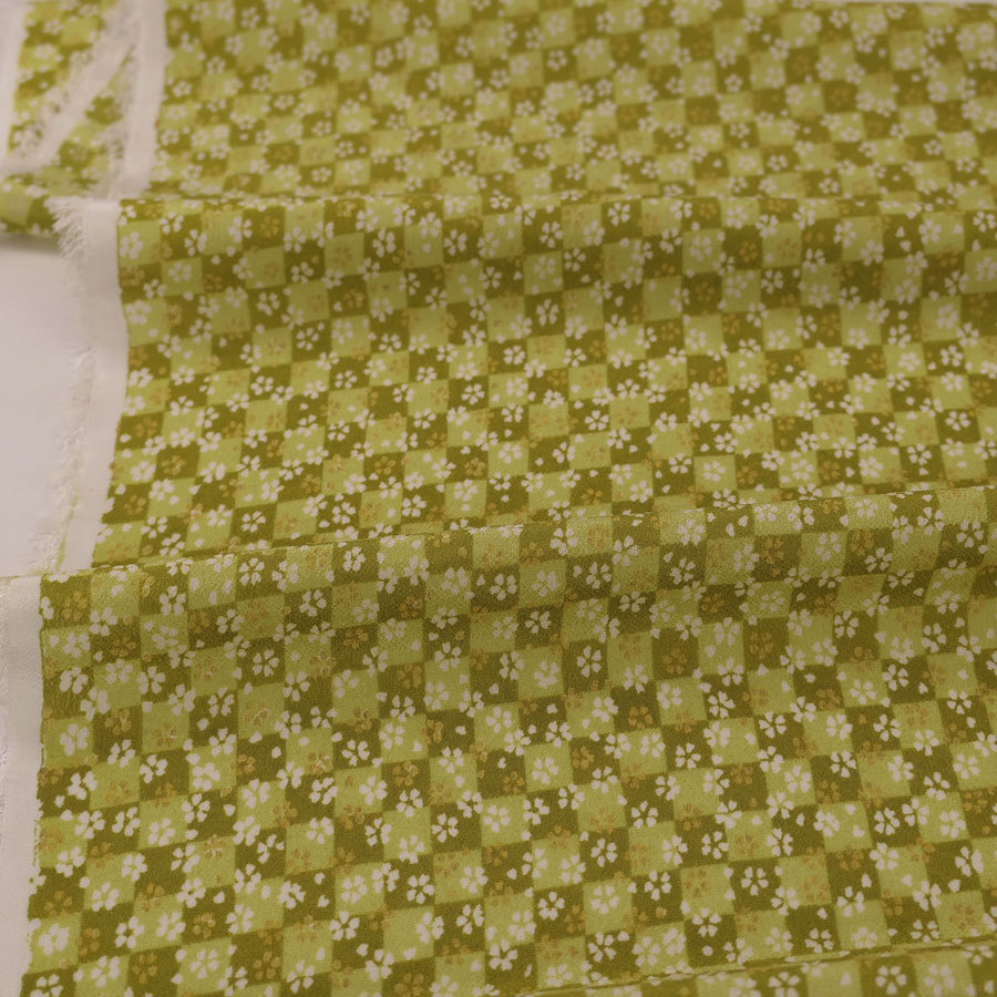 一越ちりめん生地 市松小桜(黄緑) 10cm単位 切り売り