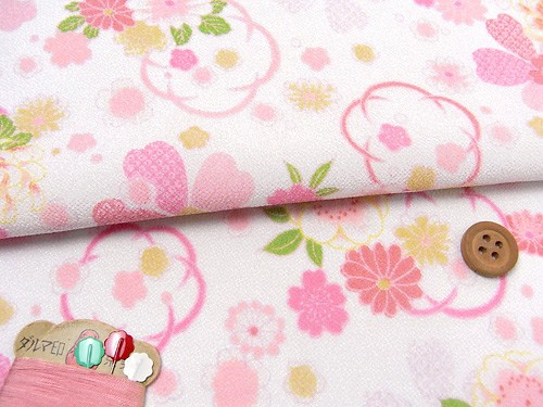 一越ちりめん・和花舞(白/ピンク) 10cm単位 切り売り