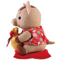 2019年の干支は「亥」。おしゃれな花柄のちゃんちゃんこを着たいのしし君が福袋を抱えてお座りする姿が可愛いですね。