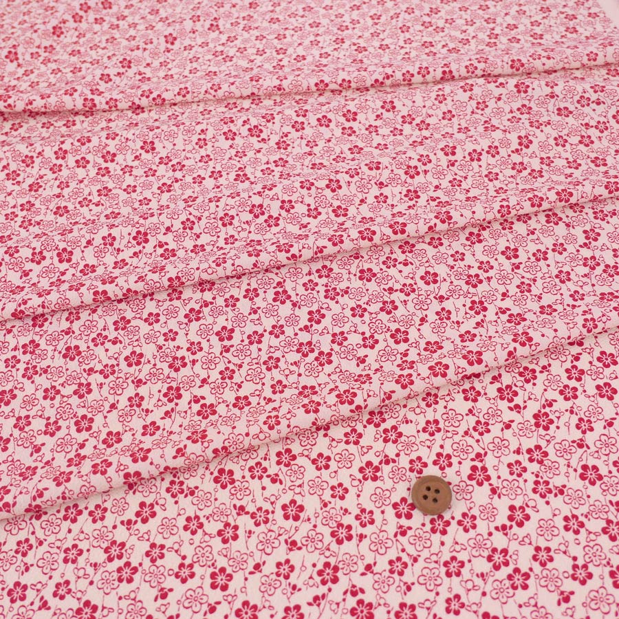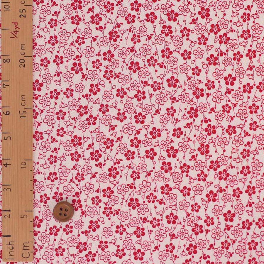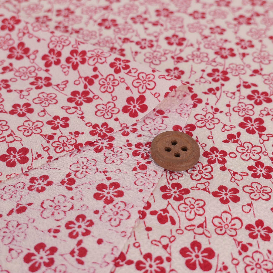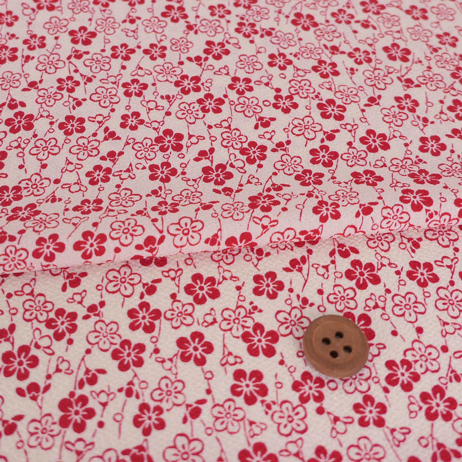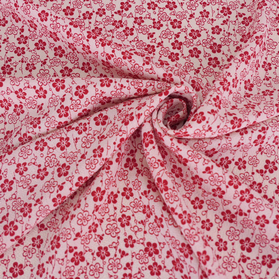 ポリちりめん生地 流れ梅(アイボリー/赤) 10cm単位 切り売り