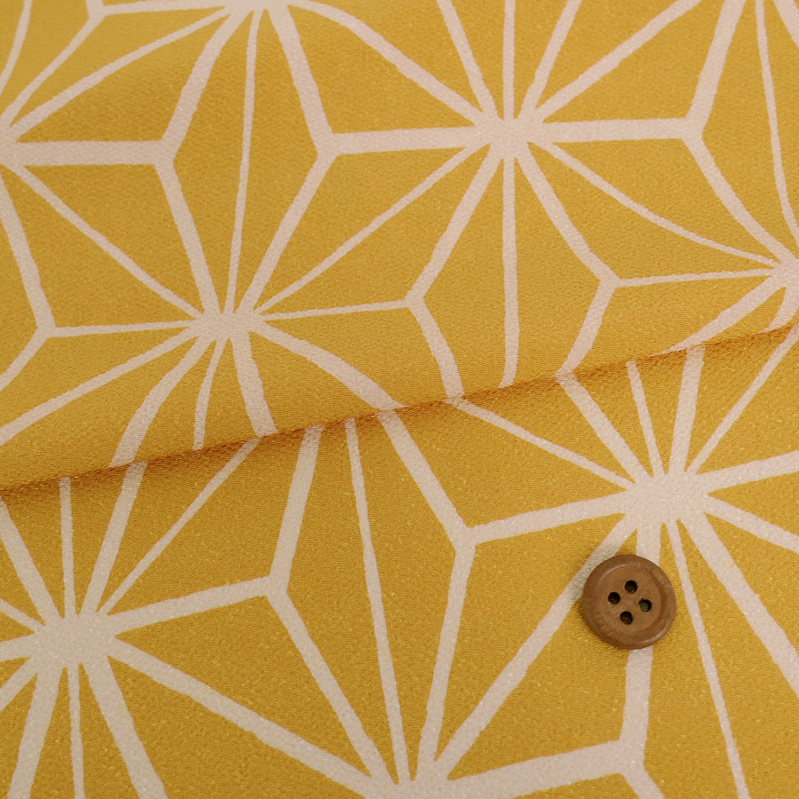 ポリちりめん生地 大きな麻の葉(からし色) 10cm単位 切り売り