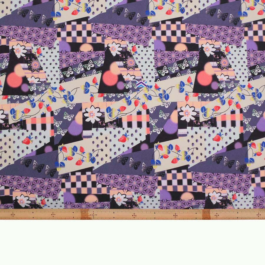ポリちりめん生地 ガーデンパーティー(紫/黒) 10cm単位 切り売り