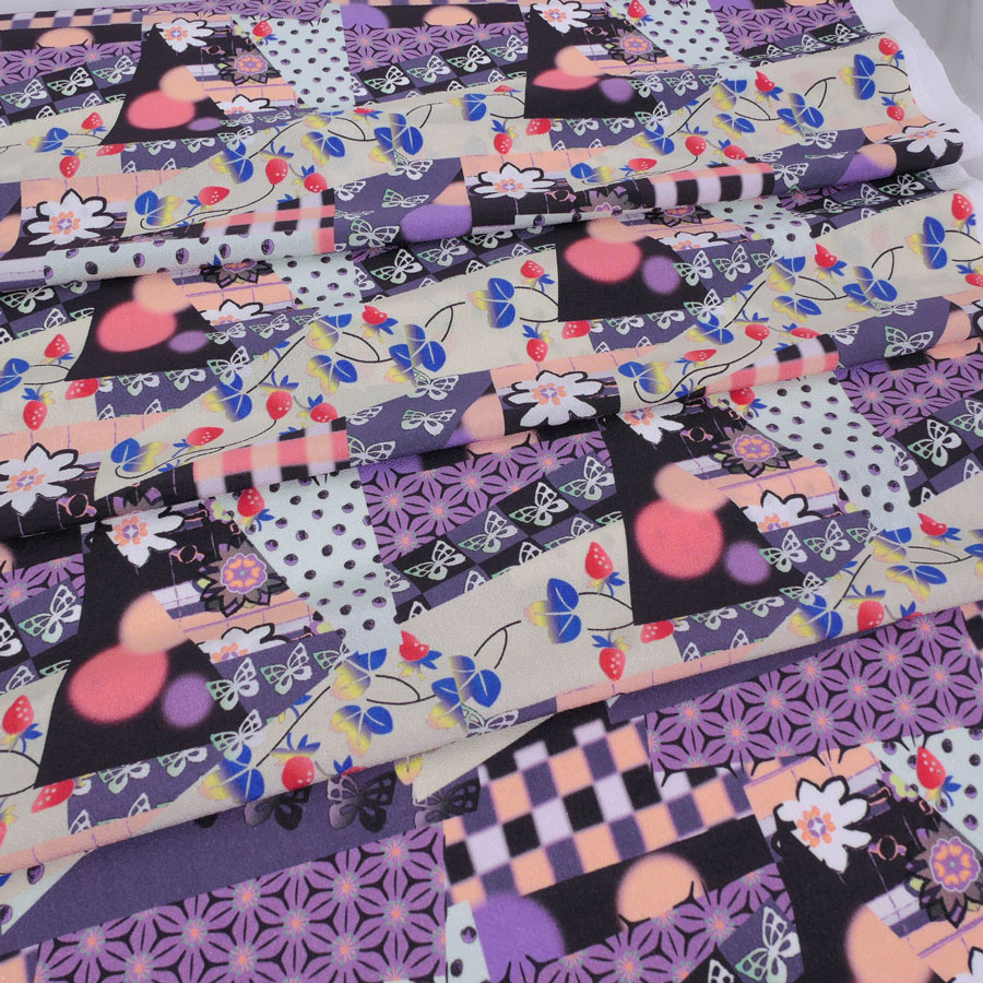 いろんなモチーフの組み合わせが楽しいポリちりめん生地です。