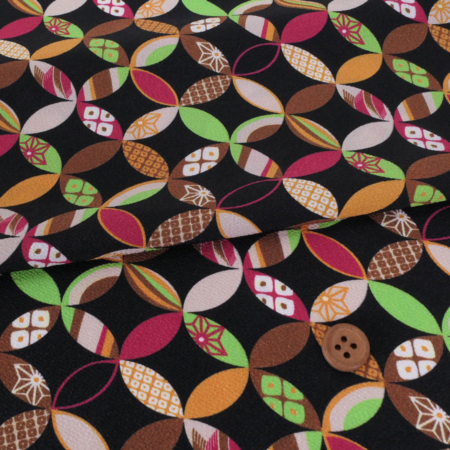 あざやかな配色のモダンデザインが目を惹くポリちりめん生地。