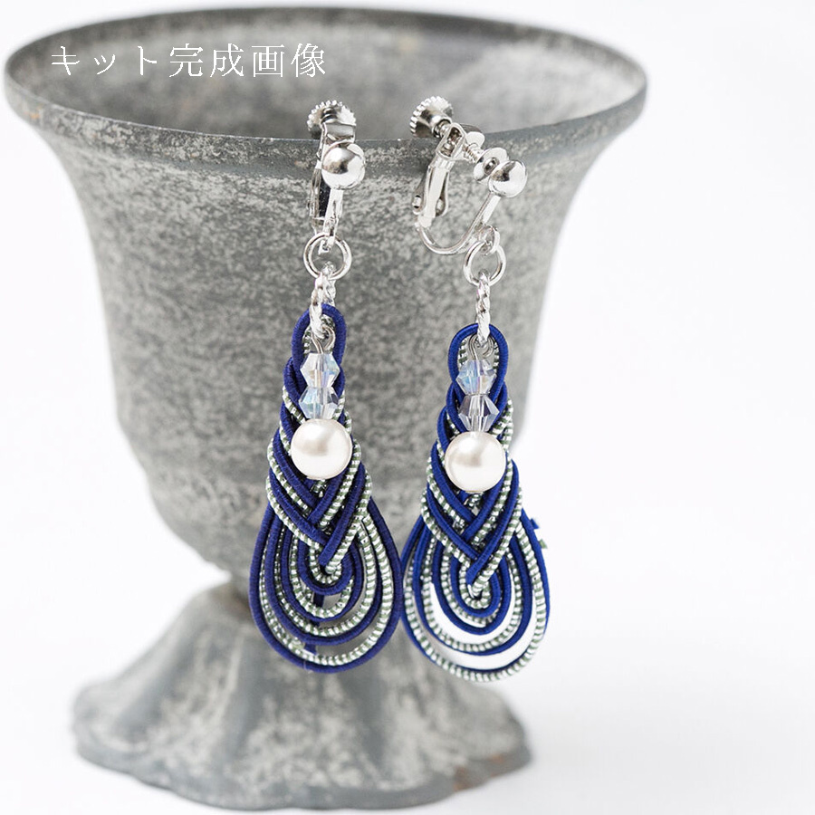 ●ビーズアクセサリー作家として活動されているKellyさんデザイン、水引で作るイヤリングのキット。深みのある色がお洒落です。