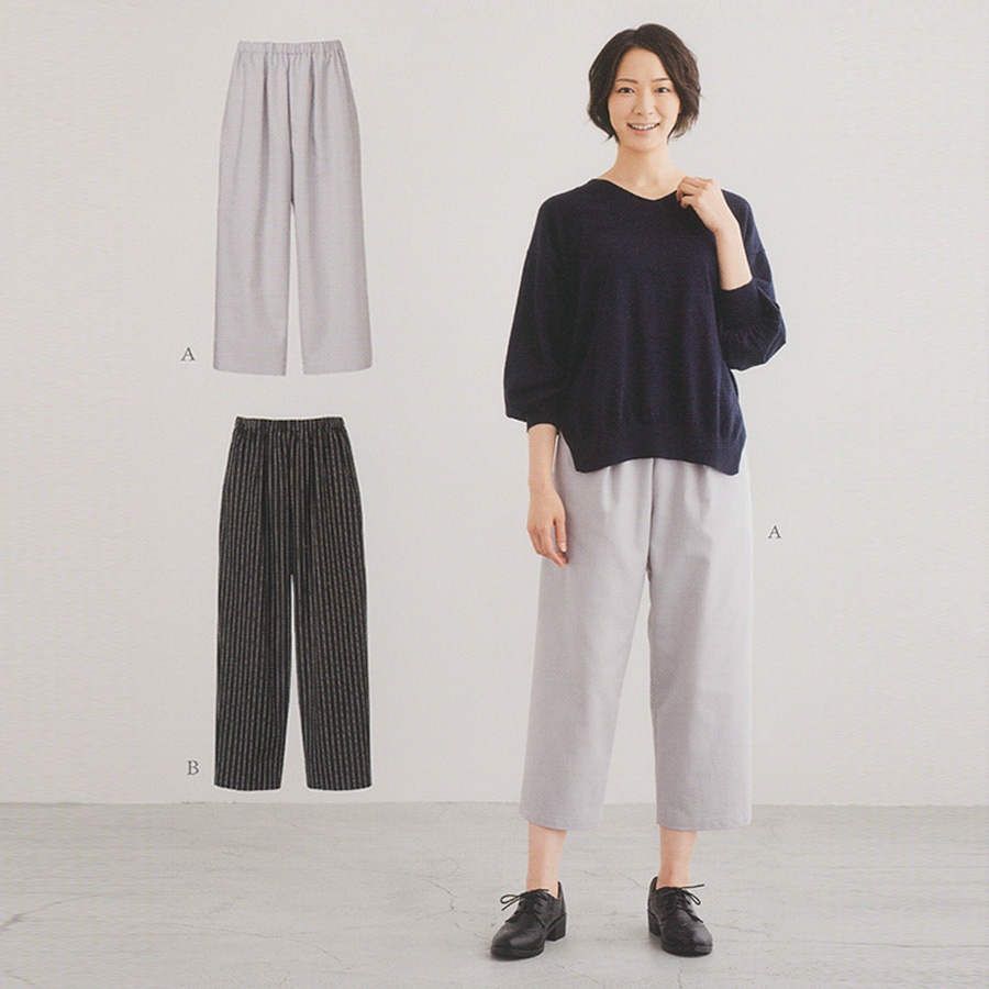 ウエストゴムで快適なはき心地のレディースタックパンツの実物大パターンです。