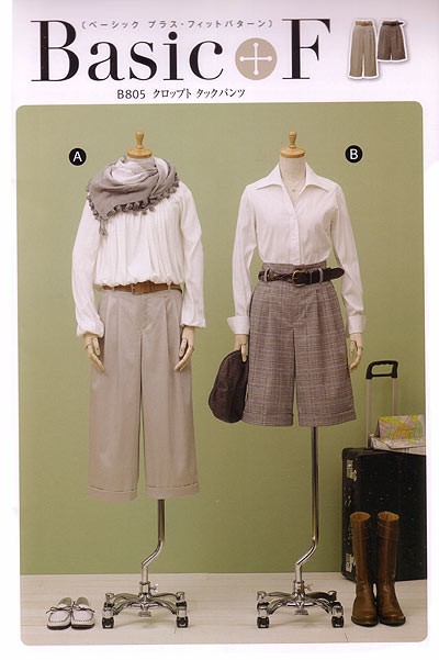 ●ウエストからの深いタックでゆったりとしたストレートシルエットのパンツは、太めのベルトでとめてウエストをマーク。足首が見える好バランスの8分丈(A)と、ブーツコーデが決まるひざ丈(B)の2種。
