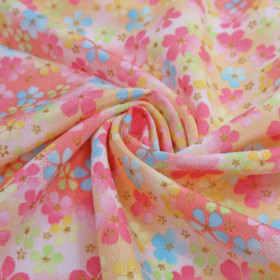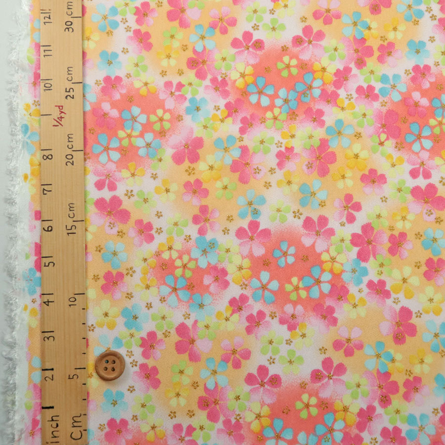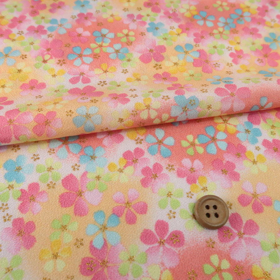 一越ちりめん生地 ふうわり花(さんご色) 10cm単位 切り売り