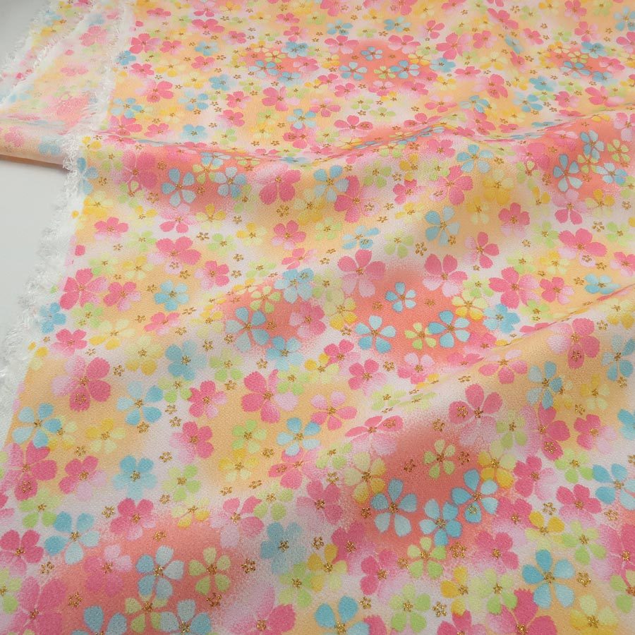 ●ソフトにぼかされた花柄がうっとりロマンティックな一越ちりめん。やさしい色の変化を楽しんでください。