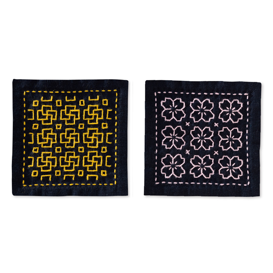 刺し子を始めてみたい人におすすめのキット。2枚のコースターで刺し子の技を学びます。