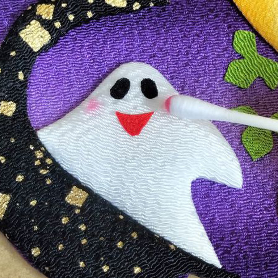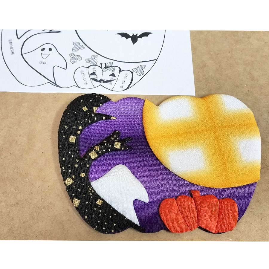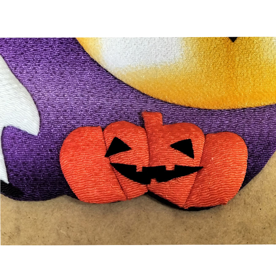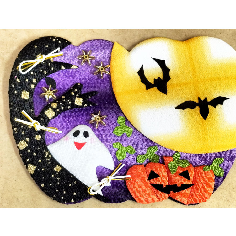 京都のちりめん工房から〜季節の押し絵を楽しむ手作りキット。ハロウィンおなじみのオバケやこうもりが、ぎゅっと詰まった賑やかなデザインです。ハロウィンも和風で楽しみませんか?