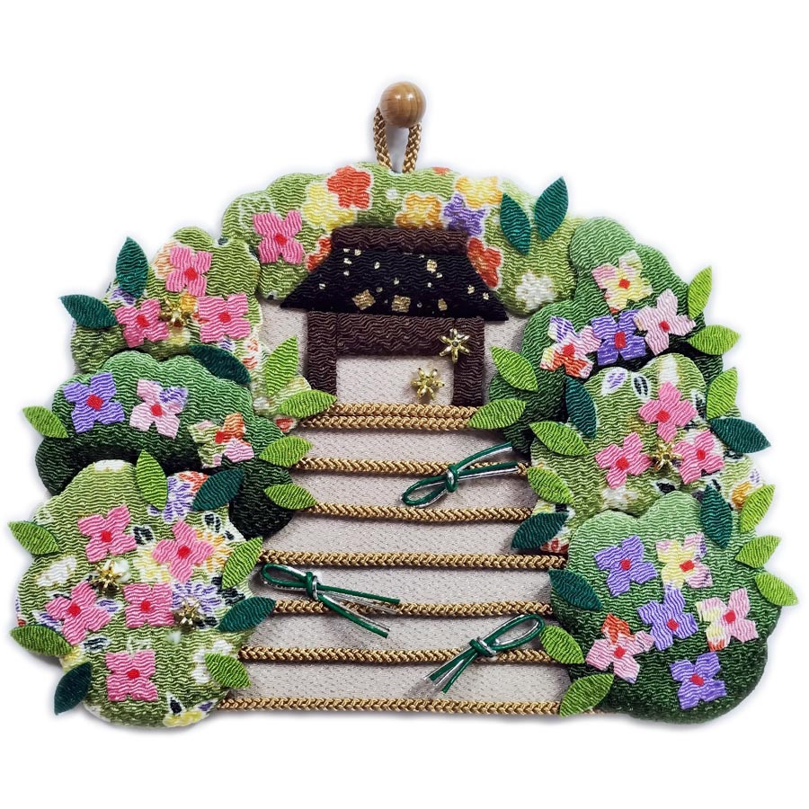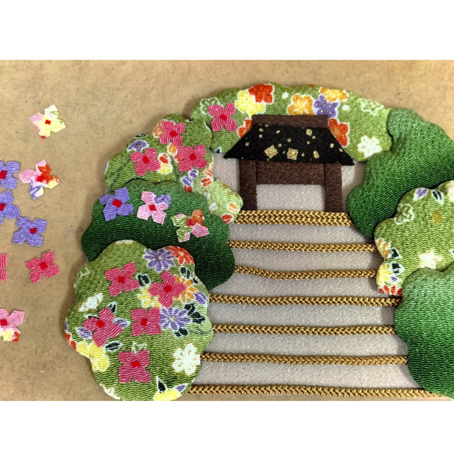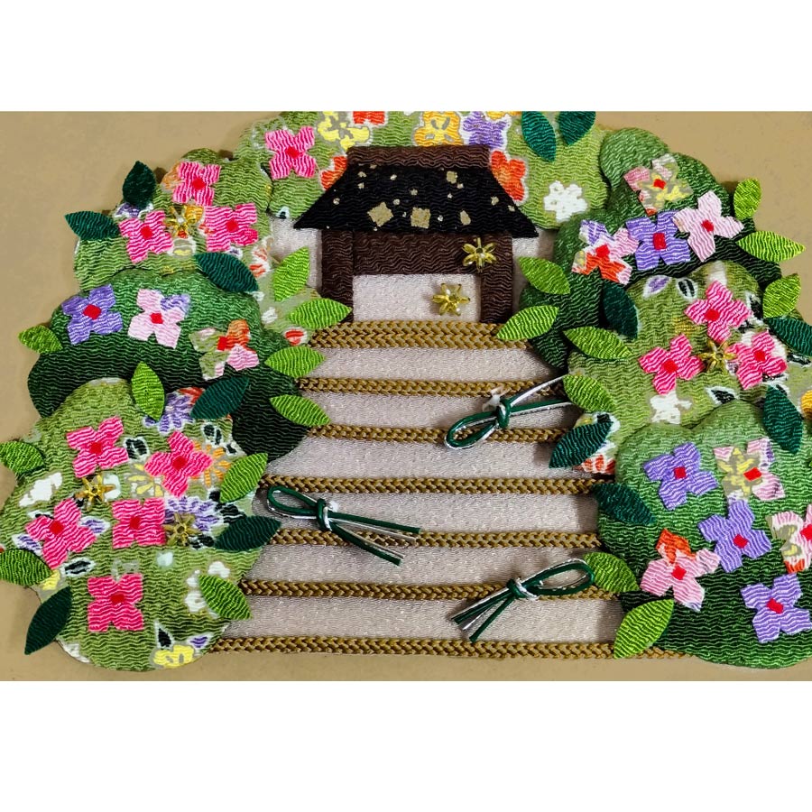 京都のちりめん工房から〜初夏に作りたい押絵タペストリーキット。あじさいが門前を彩るお寺の風景が日本らしい風情です。
