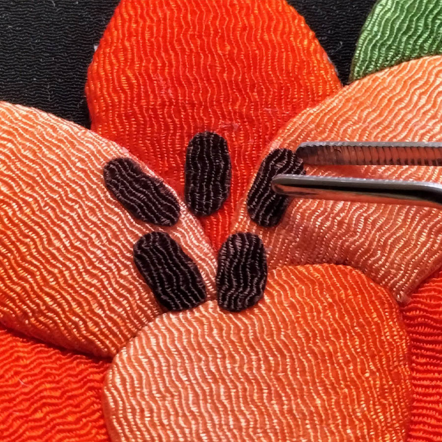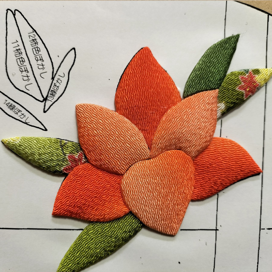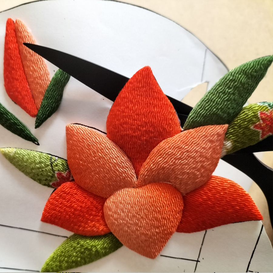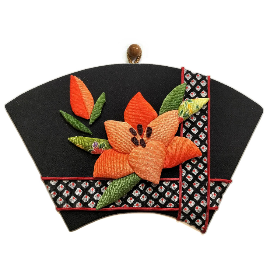 末広がりの形が縁起良い「末廣飾り」に、山百合をあしらった押し絵細工キットです。