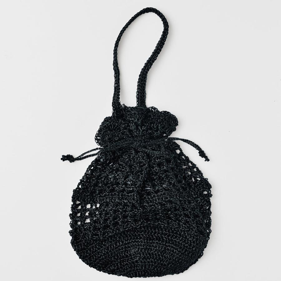 キット・メタリックコードで編む巾着バッグ(ブラック)