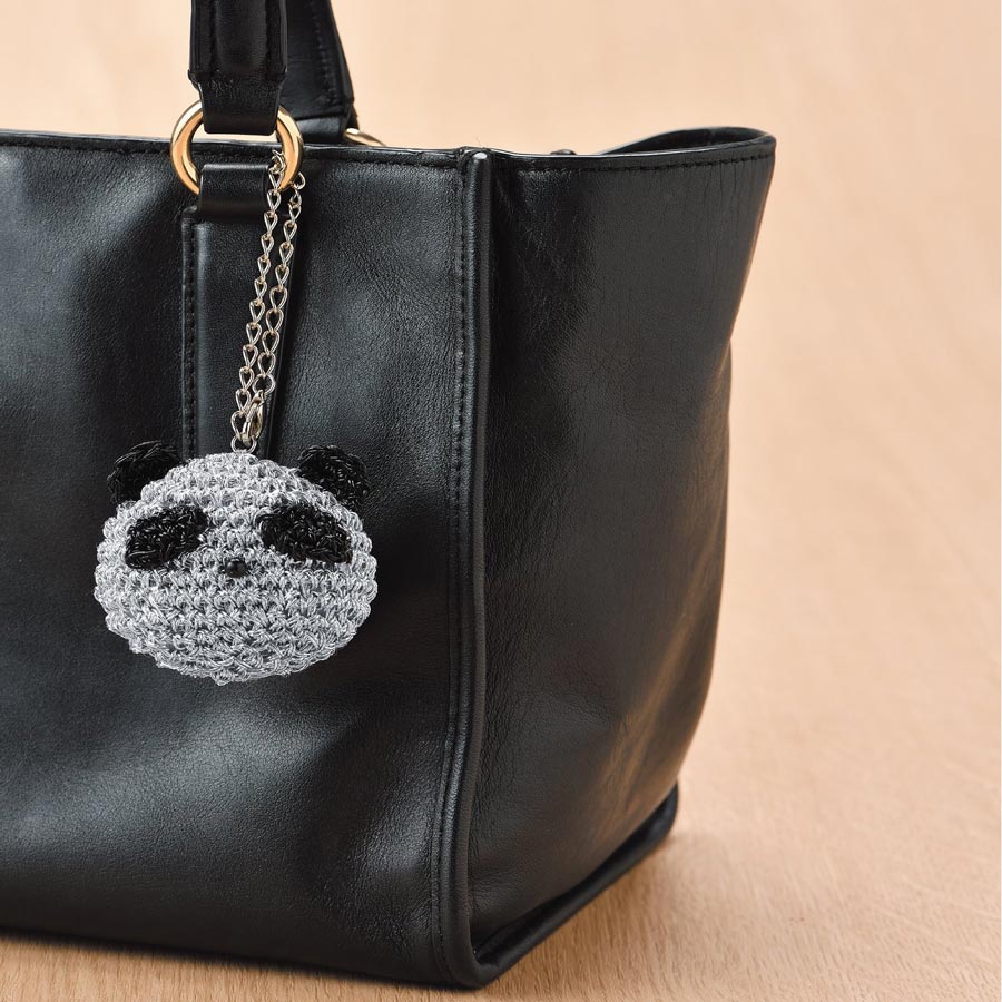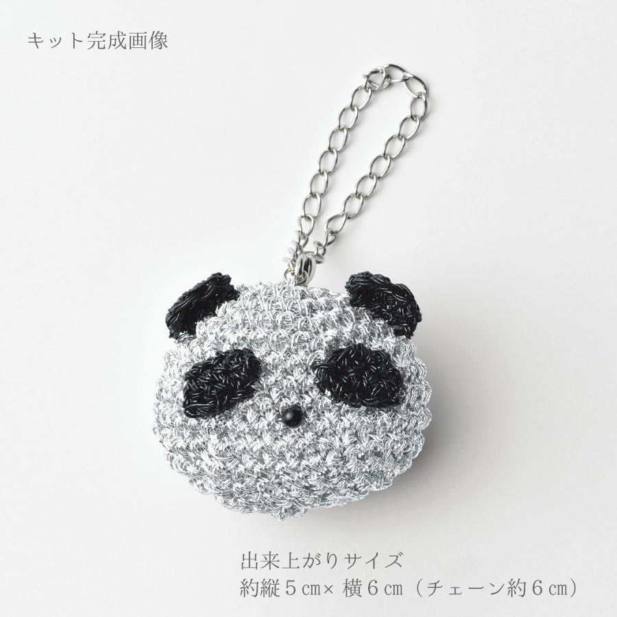 大人気のメタリックフリーコードで編む、キラキラ輝くパンダチャームのキットです。