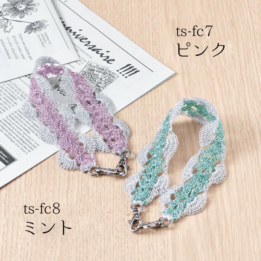 メタリックフリーコードで編む、華やかで可愛いハンドストラップのキットです。