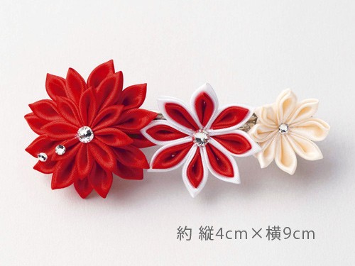 | 商品案内 | 三つのつまみ細工を組み合わせた、バレッタの手作りキットです♪ つまみ用の生地は裁断済みなので、面倒な下準備なしにすぐに始められます。専用の土台も入っているので簡単に貼るだけで作れますよ。つまみ細工が初めての方もぜひ挑戦してみてください。 洋服にも着物にも合うので普段使いに。また、七五三や成人式、結婚式など特別な日にもお使いいただけます。 ●出来上がりサイズ:約 縦4cm×横9cm ●制作時間:約180分 ●キット内容:カット済みサテン生地、バレッタ、半球土台、ボール紙土台、ラインストーン、作り方説明書 ●用意するもの:つまみ細工専用ボンド(ts-tm200)、ツマミッコ(ts-tm280)、両面テープ、はさみ、ものさし、、ボールペン ◆キット内容は一部変更される場合があります。また、予告なく生産終了となることもございます。ご了承ください。 |