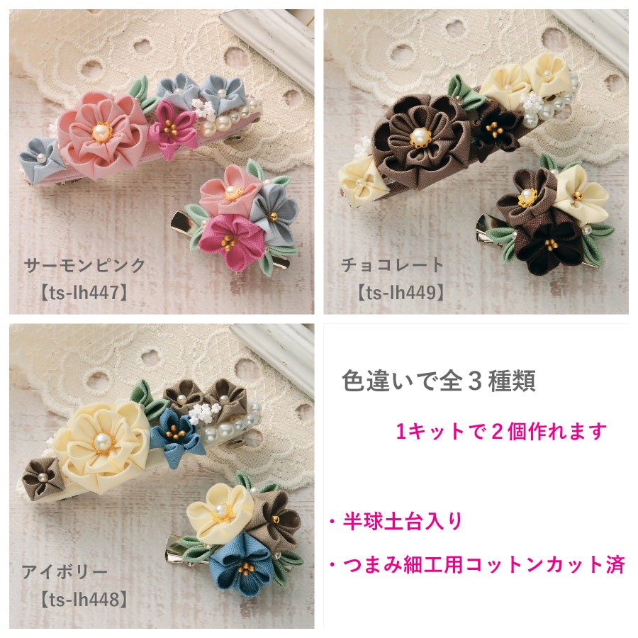 ●大人気のコットン生地で作るつまみ細工キットの新シリーズ、バレッタとブローチのキットです。