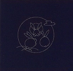 消えるプリント布を使用し、下絵がプリント済みですので簡単にお作りいただける刺し子布です。下絵は水洗いで消えますので、お好みの部分と量を刺し、ほかは無地にもできます。