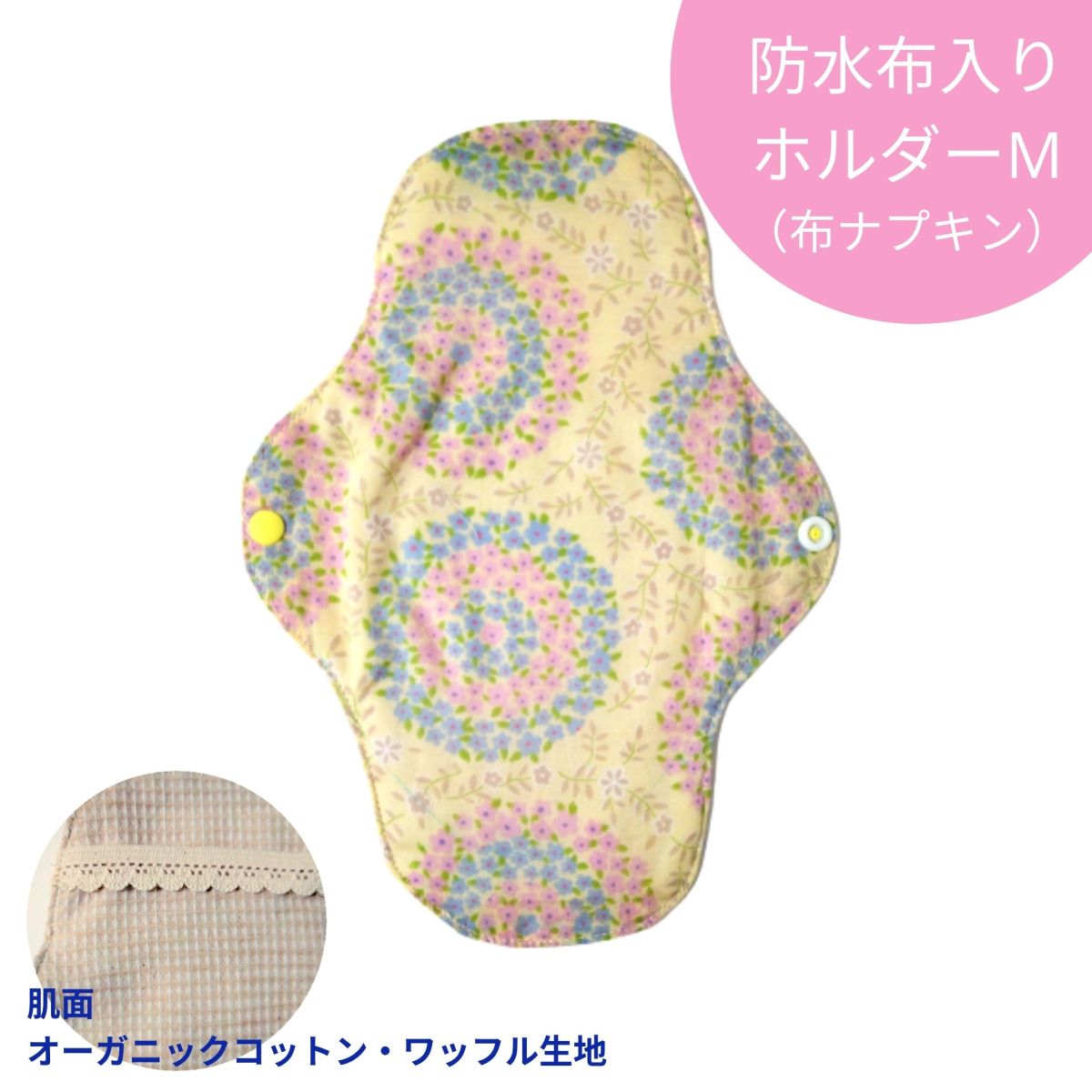 布ナプキン 防水布入りホルダー Mサイズ 花柄 イエロー オーガニック 生理用ナプキン 生理用 尿ケア用 吸水ケア BHM22-3c