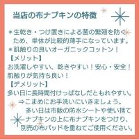もれが不安な場合は、使い捨てナプキンや防水シートの上に布ナプキンを置いてご使用ください。