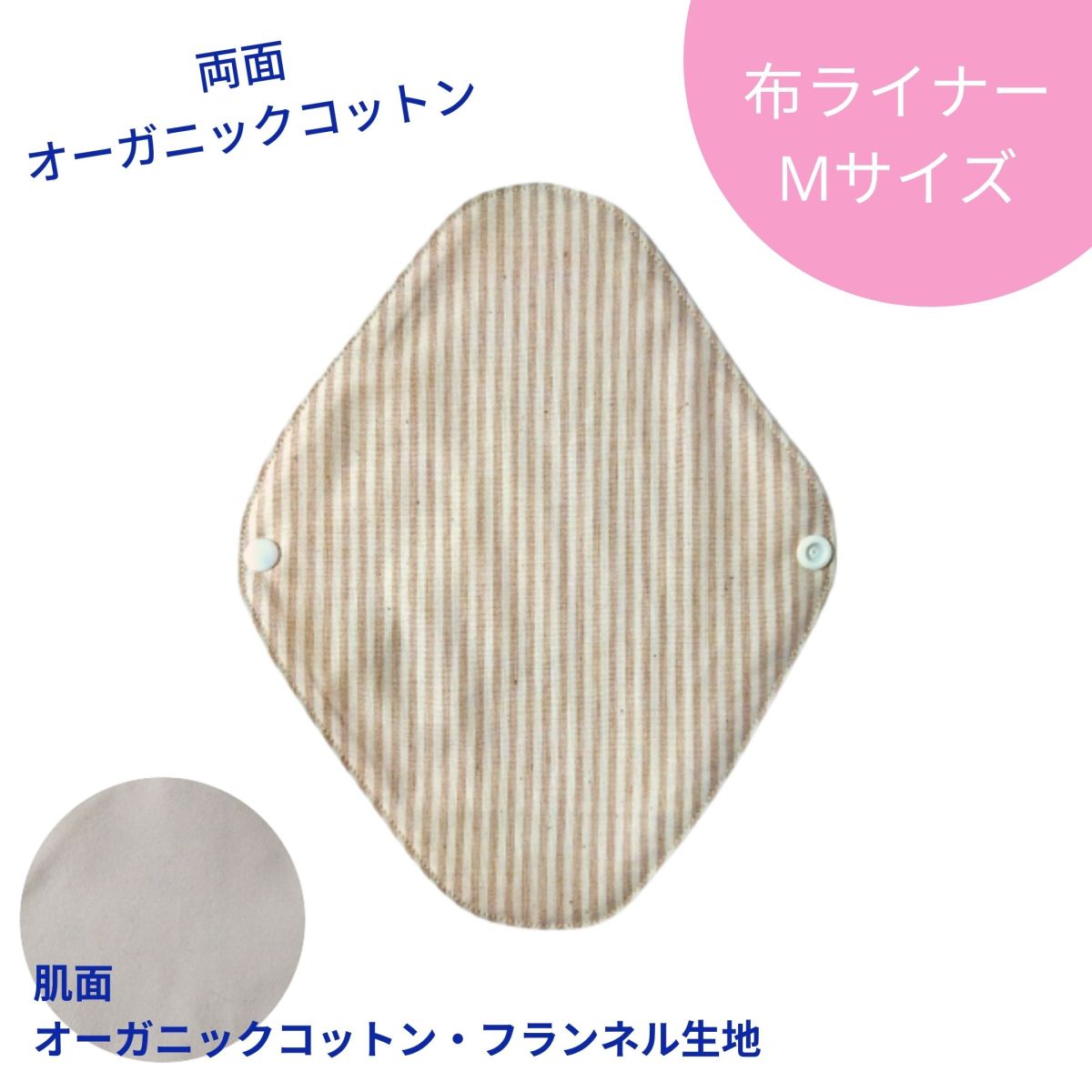 布ライナー Mサイズ 両面オーガニックコットン ネル生地 ストライプ おりもの用 布ナプキン パンティライナー リバーシブル OLM-2