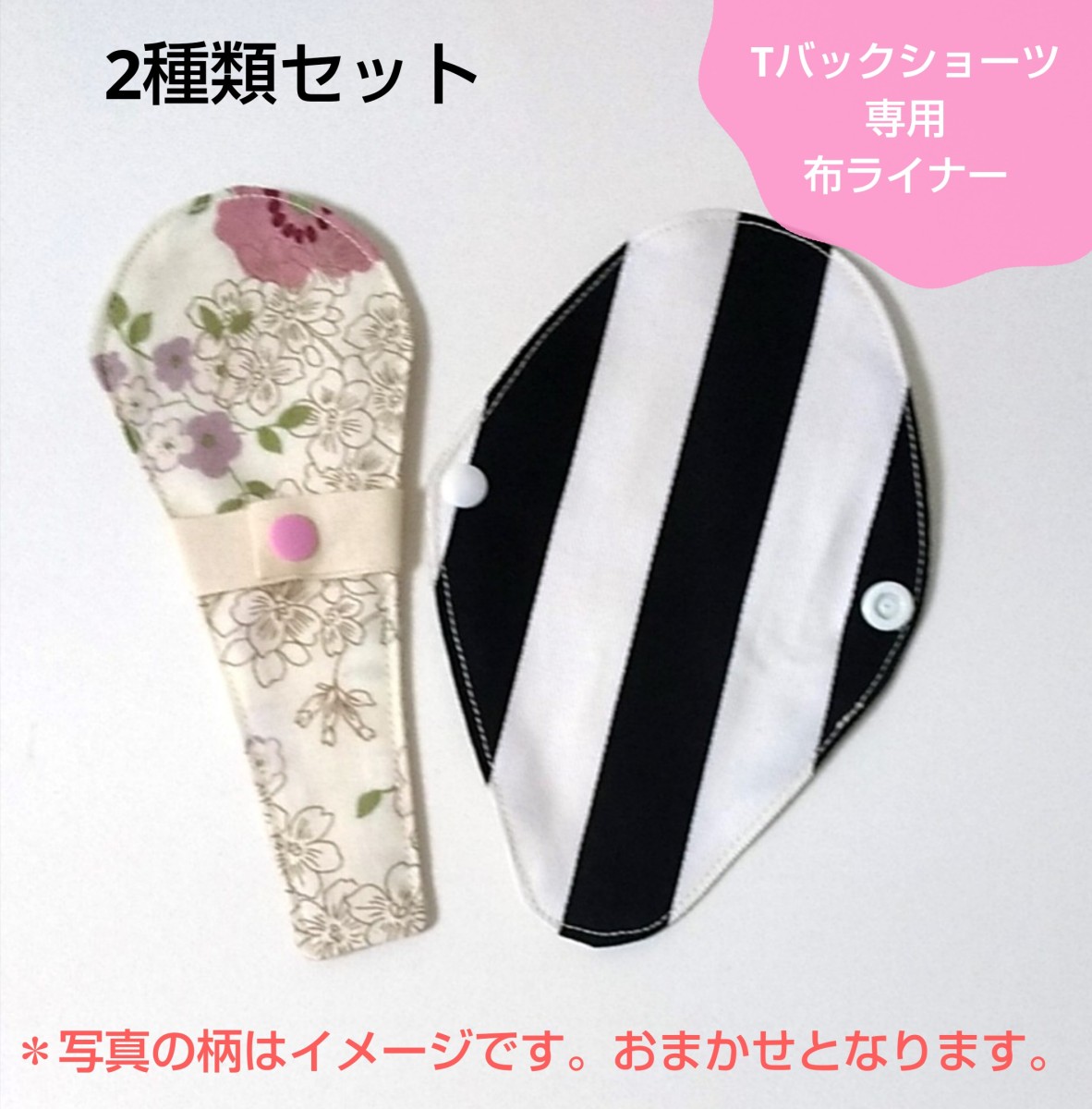 布ライナー Tバック 専用 2種類 2枚セット おりもの用 柄はおまかせ 生理用ナプキン オーガニック パンティーライナー 送料無料 TLS2-3