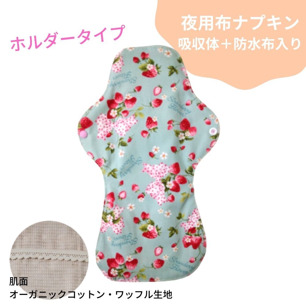 夜用布ナプキン ホルダー付き 防水布入り 吸収体入り オーガニック コットン 生理用ナプキン イチゴ柄 布ナプキン YKB21-2