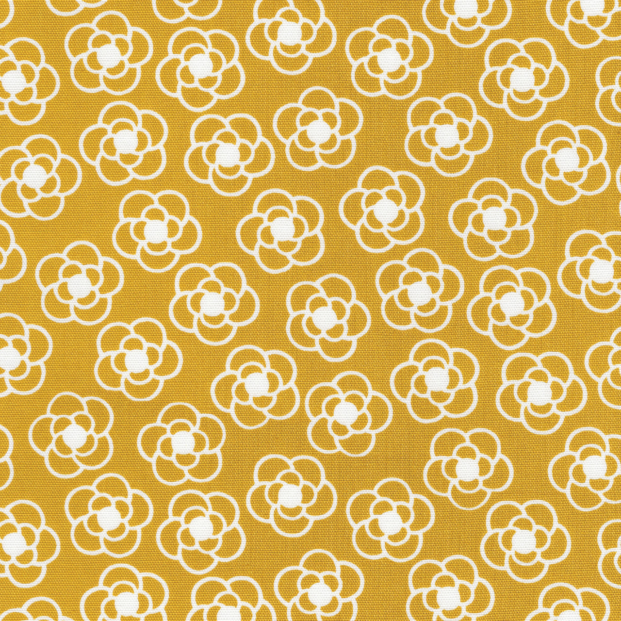 FUWARI 染布 オックス ミニ カメリア マスタード系地 6色 1m単位 生地 布 布地 北欧 北欧柄 北欧風 花柄 花柄生地 モノトーン レトロ オックス生地