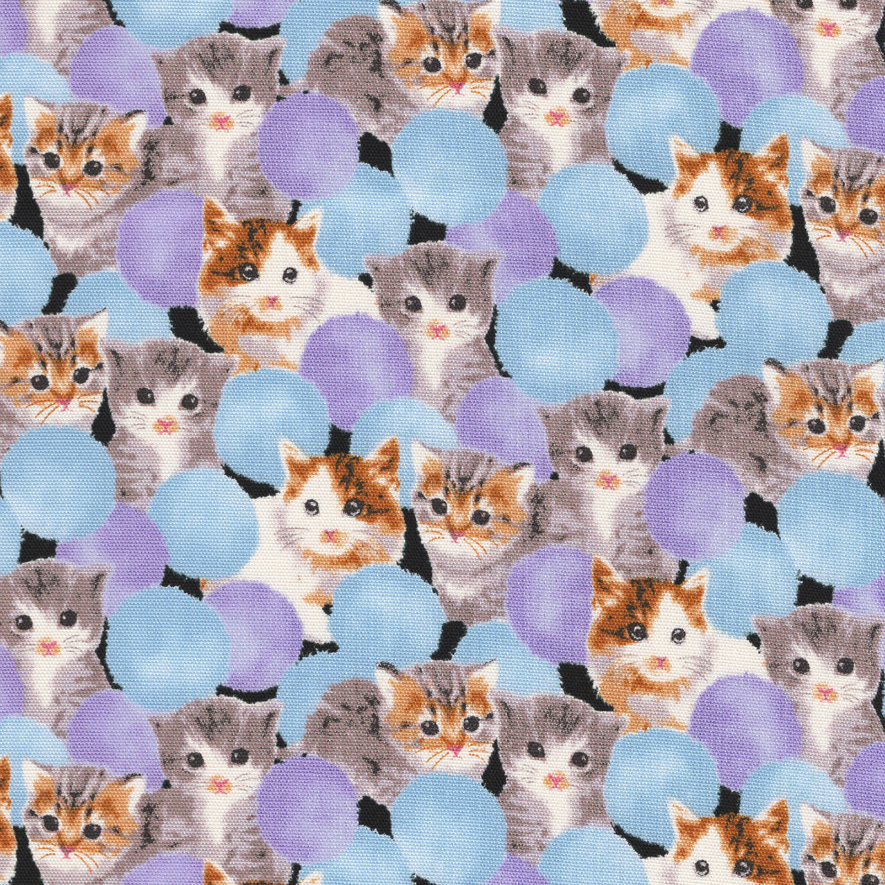 FUWARI 染布 オックス ぽんぽん猫 ブラック地 4色 1m単位 生地 布 布地 猫 猫柄生地 リアル ねこ ねこ柄 猫柄 ネコ