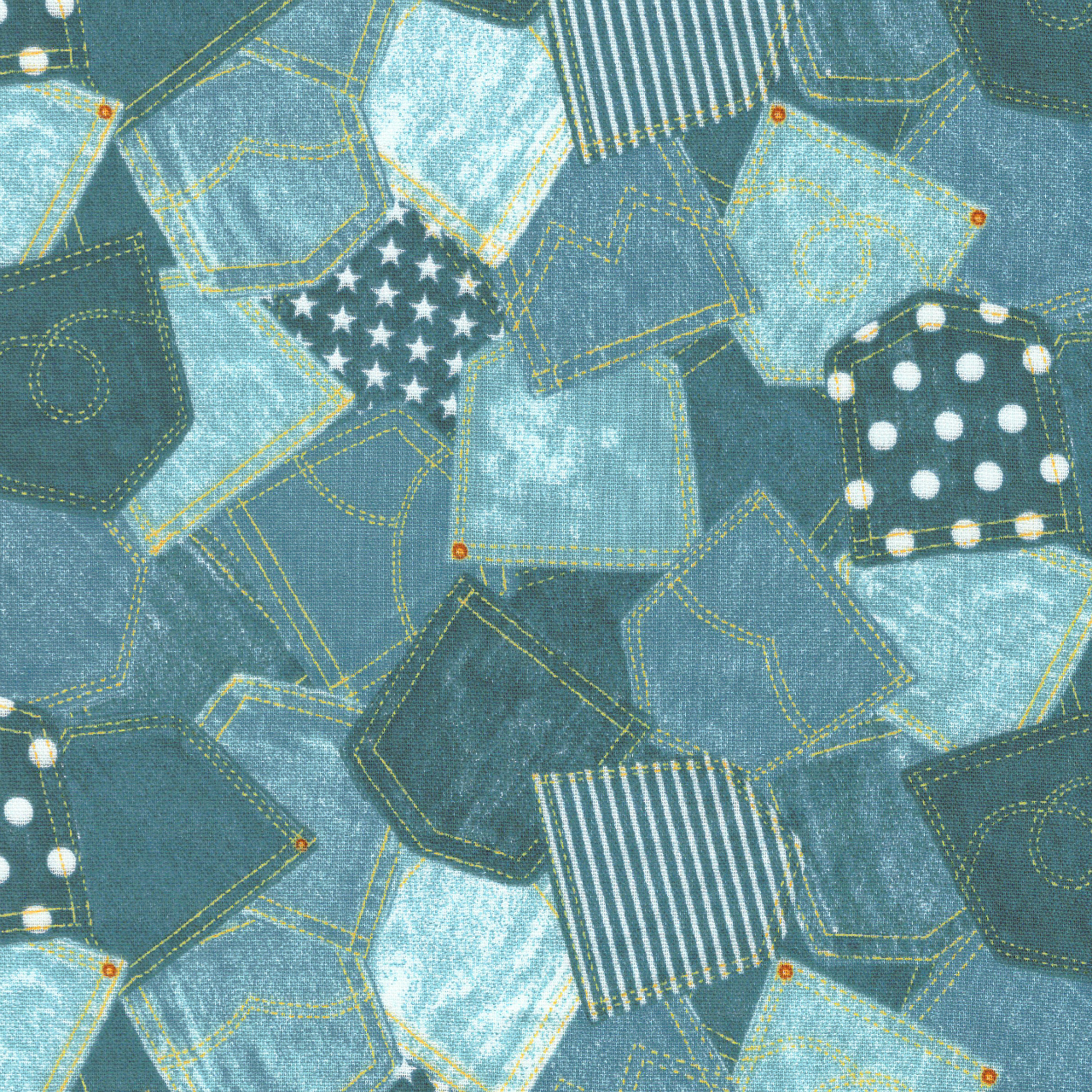 ダブルガーゼ デニム調 パッチワーク柄 デニムブルー系 3色 1m単位 生地 布 布地 デニム柄 デニム風 デニム調生地 パッチワーク 赤ちゃん コットン