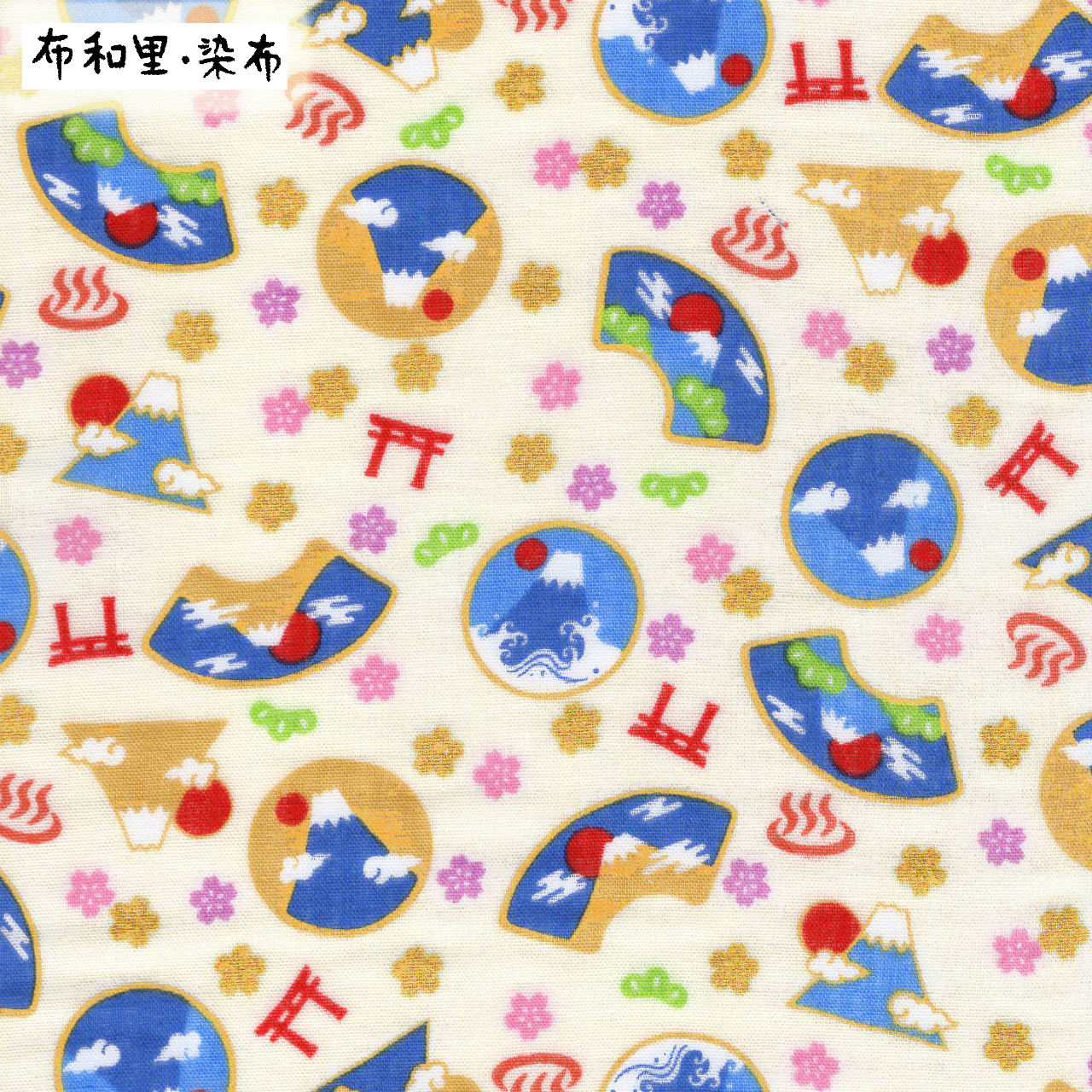 ダブルガーゼ 布和里・染布 シリーズ 和柄 和調 パート2 金襴 金粉 きらっきら富士山 1m単位 生地 布 布地 和風 和柄生地 レトロ 桜柄 花柄 金彩 綿100 コットン