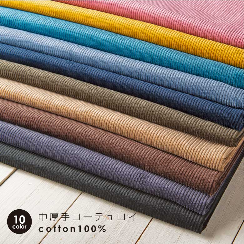 遠州産 無地 生地 布 8W 中太コール コーデュロイ やや厚手 コール天 綿100% 50cm単位販売 10色 商用利用可 厚地 950/50cm単位