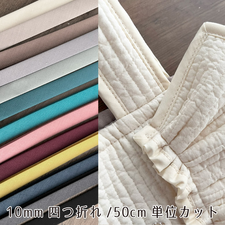 ■バイアステープ 四つ折れ10mm ヌビに合わせたカラーバリエーション。 ヌビバッグの持ち手をくるむのに最適な四つ折れ10mmのバイアステープです。 販売単位/50cm 素材/ポリエステル 65% コットン 35% メール便対応 商用利用可 -------------------------------- ※50cm単位での単価となります 50cmの場合/数量 1 1mの場合/数量 2 2.5mの場合/数量 5 ※モニターの発色により商品画像は実際と異なる場合があります。 ※こちらのバイアステープは約1.4-1.5m間隔で「継ぎ目」(生地が縫い合わさっている部分)が入ります。継ぎ目を避けてのカットは対応しておりませんので予めご了承ください。 ※ロットにより、お色に若干の違いがあります。 ※上記を理由にした返品、交換はお受け出来ませんので、ご了承の上、お求めくださいませ。 |
