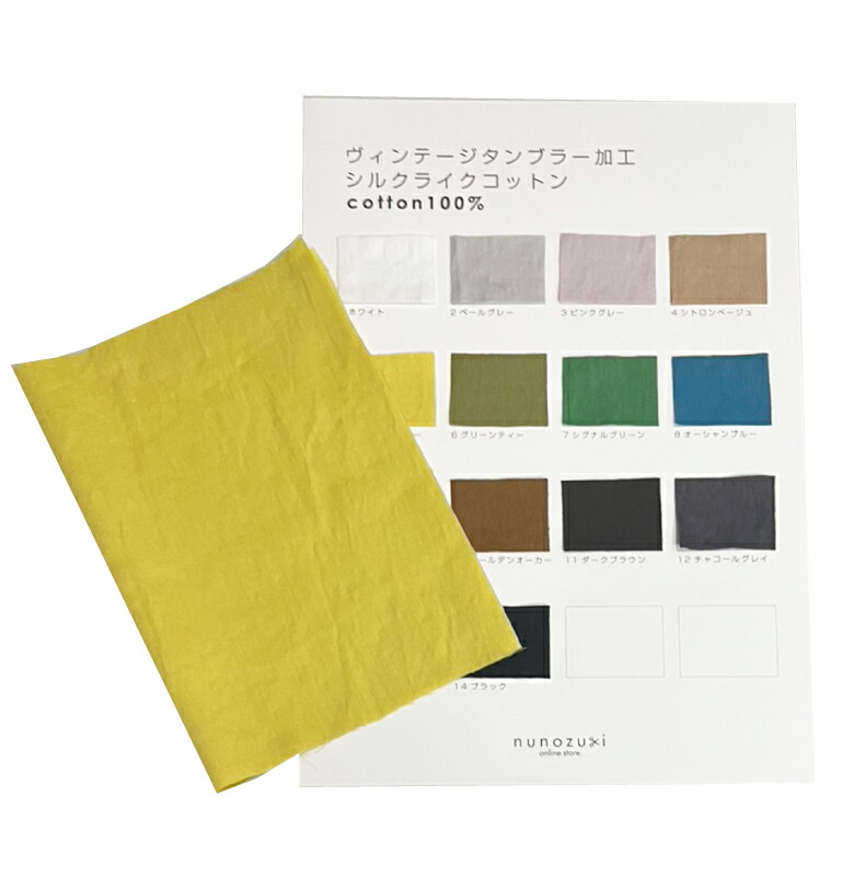 【カラーサンプル】無地 生地 布 ヴィンテージタンブラー加工 シルクライクコットン コットンサテン コットン100% 商用利用可 服地 110/サンプル