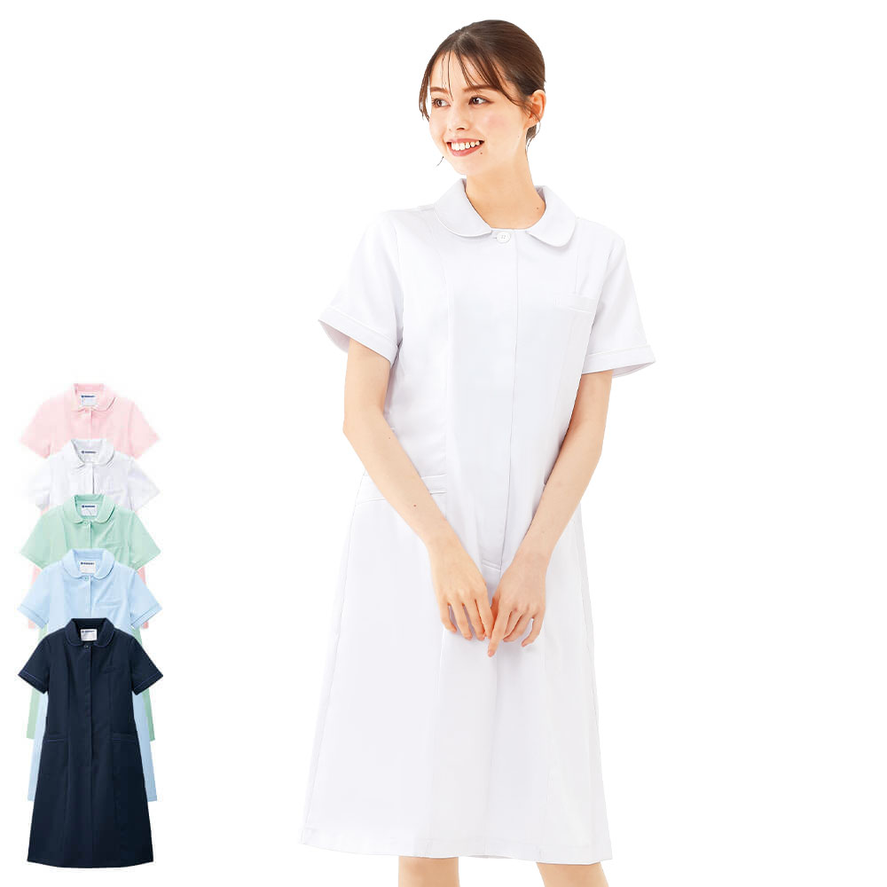 医療 看護 白衣 女性 レディース 涼しい 透け 半袖 ユニフォーム 制電クールストレッチ パイピングワンピース