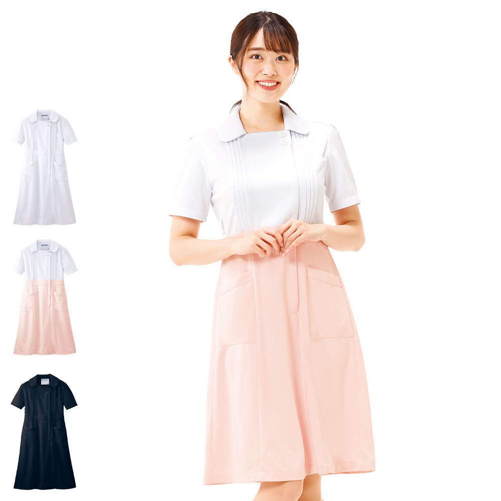 医療 ナース 看護 白衣 受付 エステ 女性 かわいい ストレッチ 吸汗速乾 レディース ピンタックワンピース