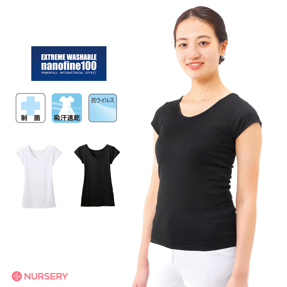 ナース 医療 病院 看護師 吸汗速乾 制菌 ナノファイン 抗ウィルススクラブインナー(フレンチ)
