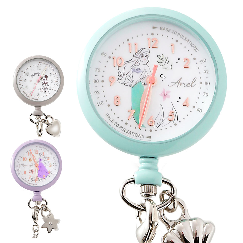 ナース 小物 グッズ 看護 医療 介護 かわいい クリップチェーン 針蓄光 ミッキー ラプンツェル アリエル Disney 蓄光ナースウォッチ