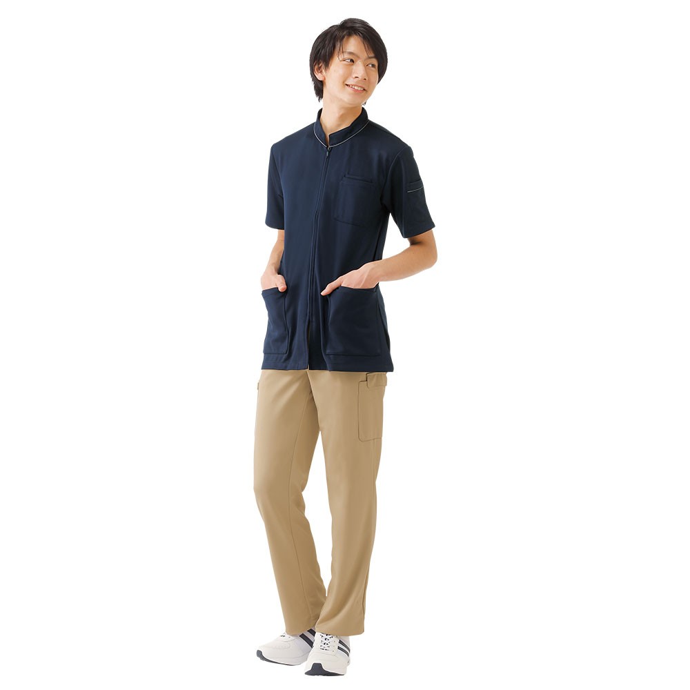 医療 病院 ナース 看護 白衣 男性 前開き ジップ アクティブストレッチ ストレッチジップジャケット(メンズ)