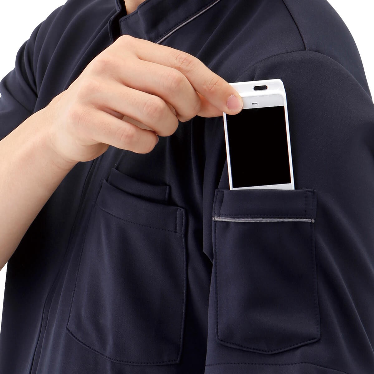 ●ポケット位置/前両脇、胸ポケット×2、左袖