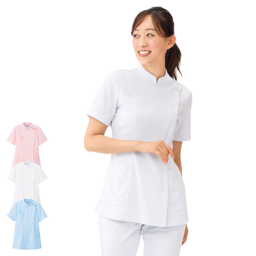 医療 ナース 看護 白衣 ユニフォーム 半袖 女性 レディース 白 シンプル ストレッチケーシージャケット