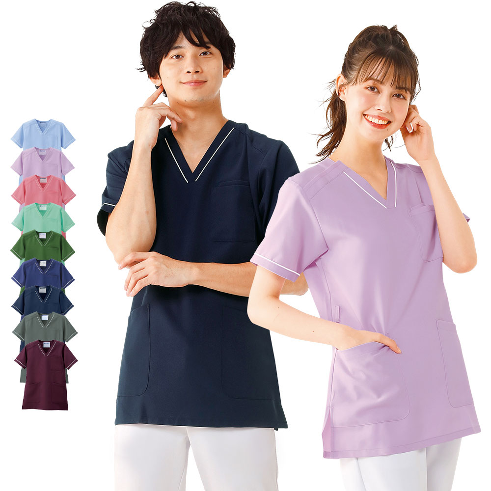 医療 ナース 看護 白衣 ユニフォーム 制服 半袖 レディース メンズ 胸ポケット 男女兼用 ナースリースクラブ(さらりタッチ/ライン)
