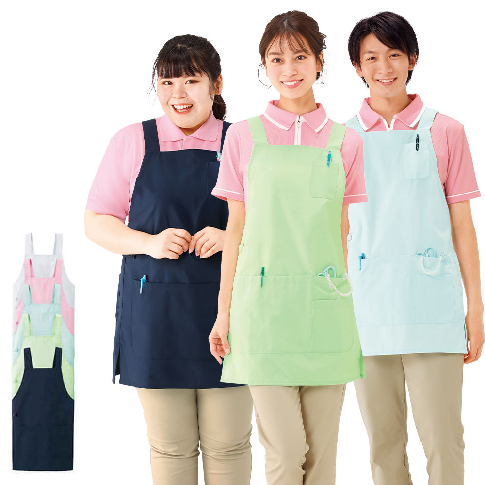 医療 ナース 看護 介護 ユニセックス 男女兼用 ショート丈 多サイズエプロン(H型)【S-LL】