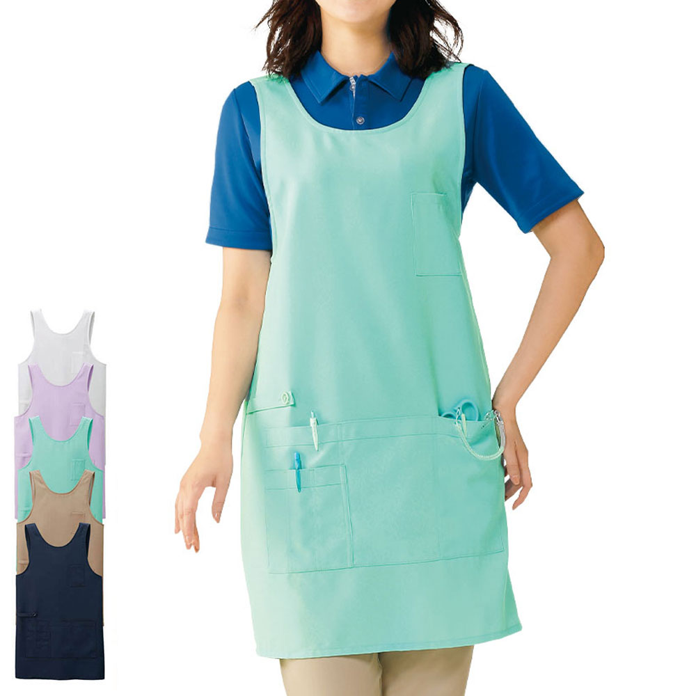 ナース エプロン 介護 病院 保育士 看護師 歯科衛生士 男女兼用 ポケット付 ロング丈 防シワ クロスバックタイプ ケアエプロン(さらりタッチ)
