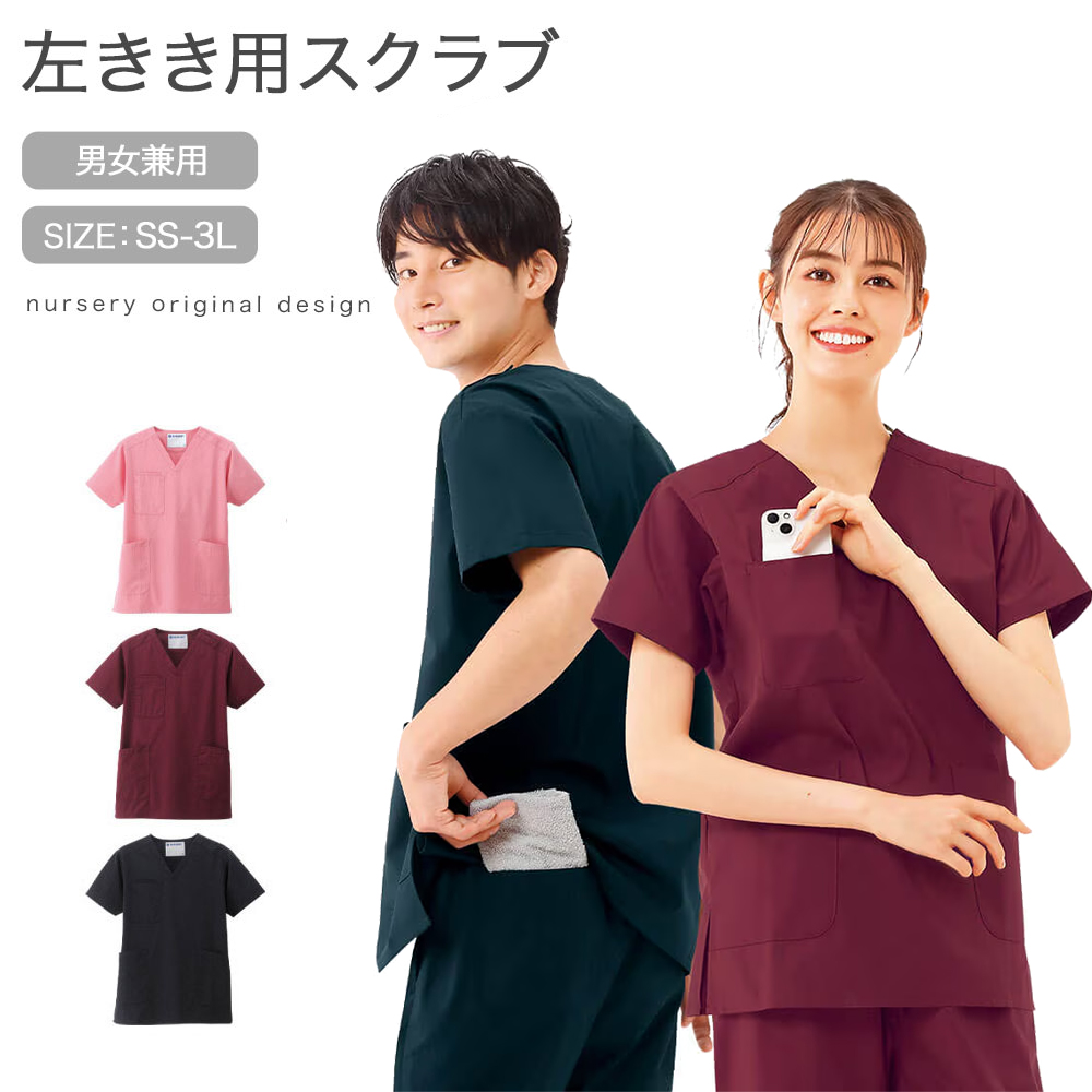 胸ポケットが右側に付いた左利きスクラブ