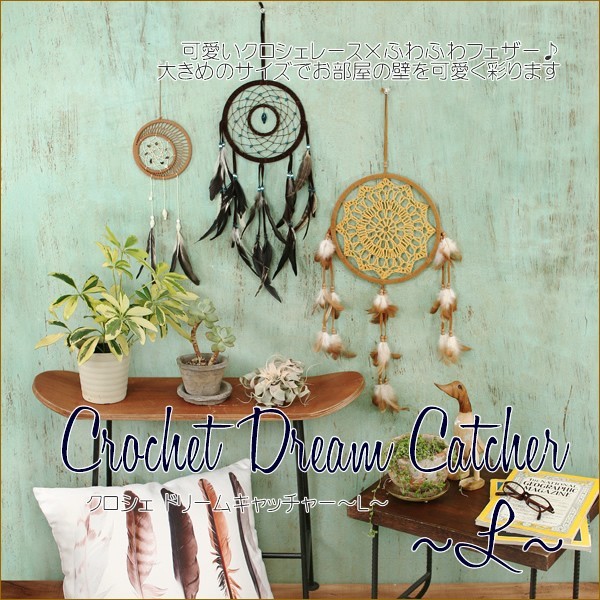 SALE/ ドリームキャッチャー クロシェ ハワイアン雑貨 アジアン雑貨 魔除け お守り 壁掛け 飾り タペストリー 羽 フェザー メール便OK