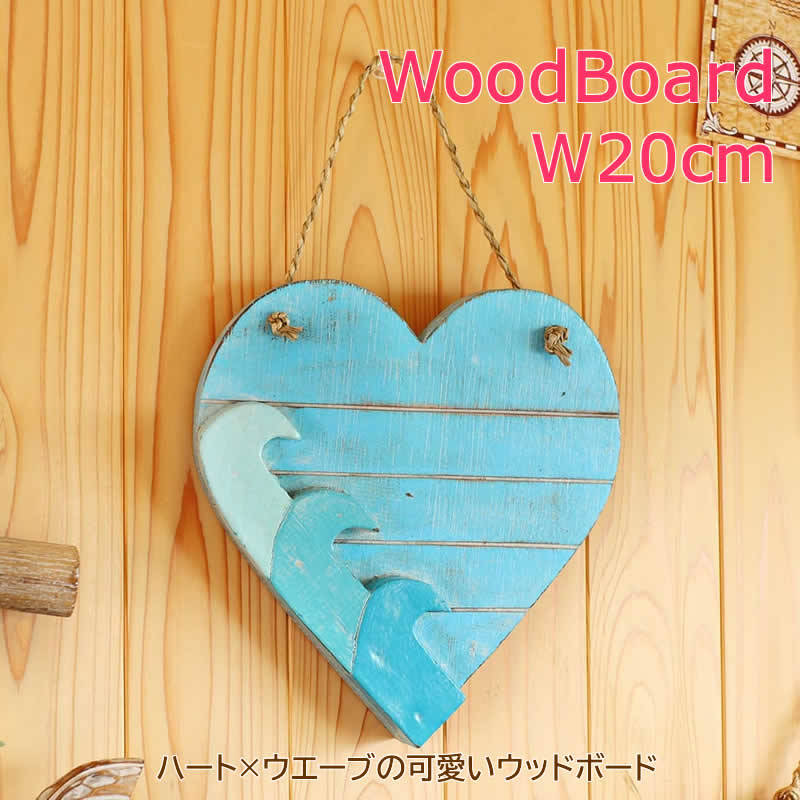 ウッドボード ハートウェーブS インテリア 飾り 吊るす オーナメント 壁面 ディスプレイ サインボード ハート 波 ウエーブ アジアン雑貨 ハワイアン雑貨