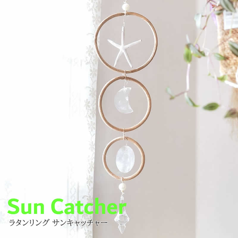 ラタンリング サンキャッチャー ハワイアン雑貨 スターフィッシュ カピス貝 キラキラ 吊るし ガーランド ウォールデコレーション アジアン雑貨 インテリア