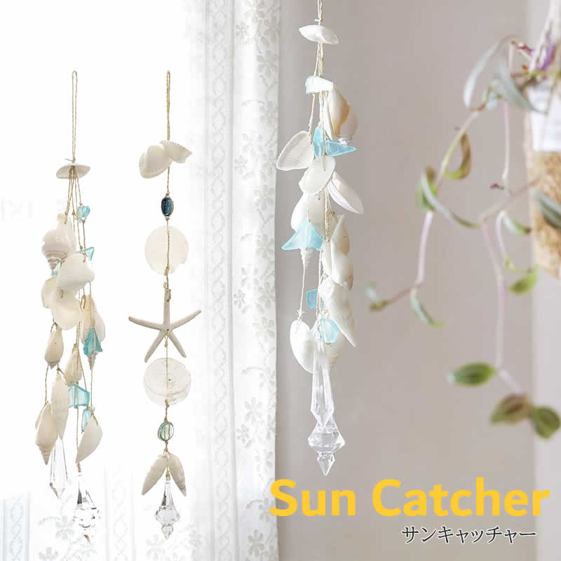 サンキャッチャー ハワイアン雑貨 シェル ビーチグラス スターフィッシュ カピス貝 吊るし オーナメント ガーランド ウォールデコレーション アジアン雑貨
